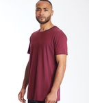 100% organic cotton. Organic or in-conversion to organic cotton. Modern fit. Narrow fine ribbed collar. Taped neck. Side seams. Twin needle straight hem. Tear out label.
