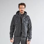 Hybrid, breathable and windproof jacket, extremely versatile and ideal for those who carry out dynamic work in cold or medium-temperate environments without, however, compromising on freedom of movement. Central closure with waterproof zip. Fixed and adjustable hood, elasticised cuffs. Quilted padded jacket with seamless technology. Internal lining in nylon and microfleece with serigraph print. Equipped with two large front pockets closed with fluo zip and a pocket on the chest closed with a waterproof zip. Two large inside pockets. Shaped bottom and fluo piping on the back. U-Power logo, tone-on-tone.